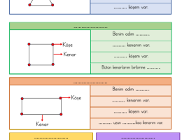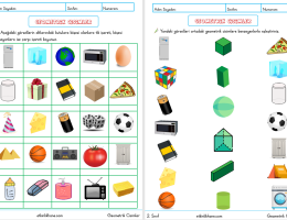 Bu etkinlik kağıdında toplam 4 sayfa etkinlik vardır. Günlük hayatta kullandığımız nesnelerin hangi geometrik cisimlere benzediğini bulma. Köşesi olan…